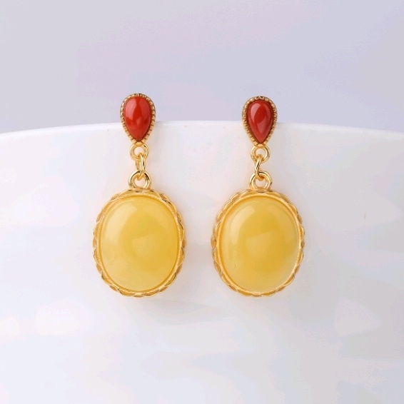 Hot Selling🔥 Almost Sold OutAD465-南红水滴蜜蜡蛋面戒指(南红3*5mm+-)(蜜蜡9*11mm+-)