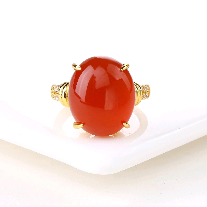 Hot Selling🔥 Almost Sold OutAD372-原矿冰红螺纹排锆蛋面戒指14*16mm+-