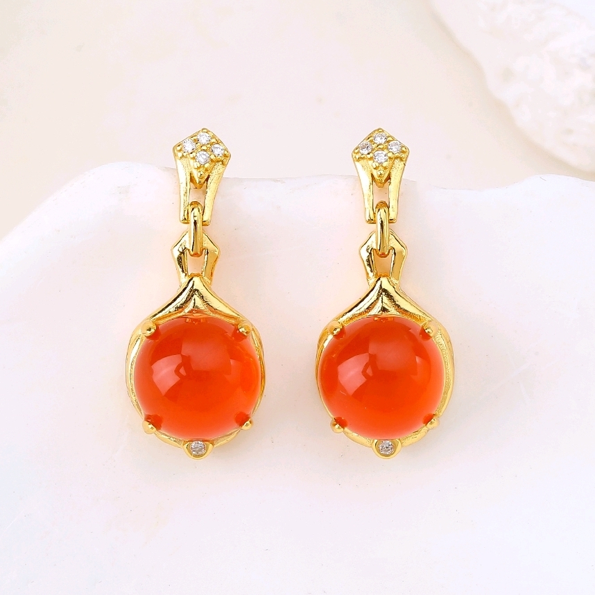 Hot Selling🔥 Almost Sold OutAD375-原矿冰红半包珠耳钉8mm+-