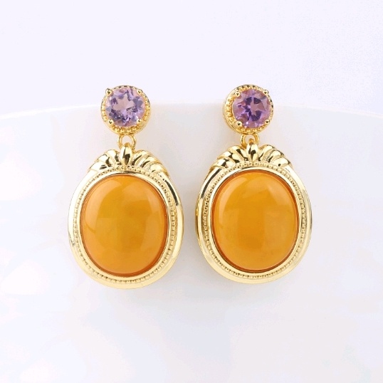 Hot Selling🔥 Almost Sold OutAD391-紫水晶老蜡蛋面耳饰(老蜡11*13mm+-)(紫水晶5*5mm+-)