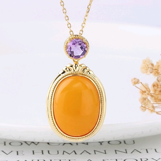 Hot Selling🔥 Almost Sold OutAD385-紫水晶老蜡蛋面吊坠(老蜡16*21mm+-)(紫水晶7mm+-)