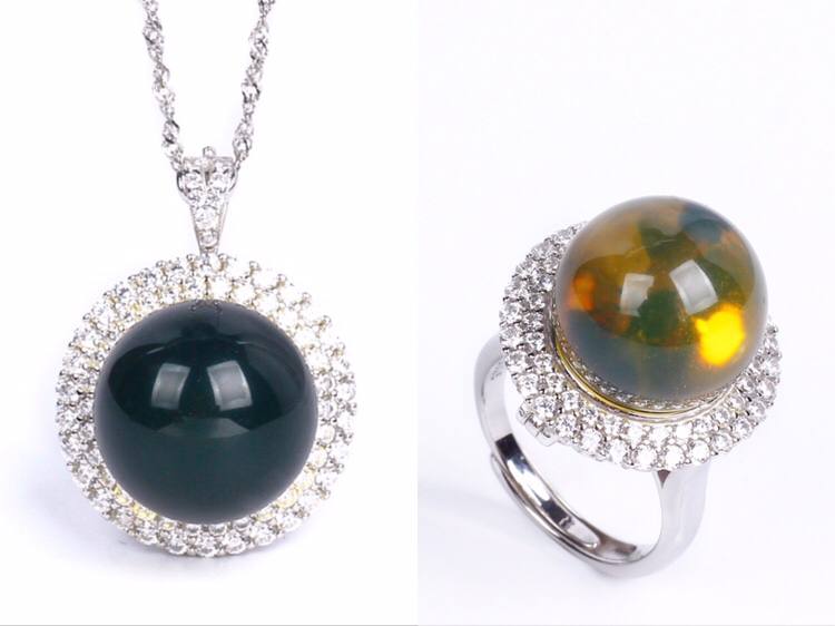 Hot Selling🔥 Almost Sold OutAD545-墨西哥蓝珀戴妃吊坠戒指两用款 13mm+-