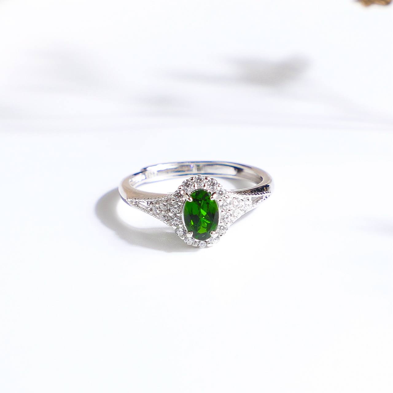 Hot Selling🔥 Almost Sold OutAD541-透辉石三锆旦形戒指 4.5x6.5mm