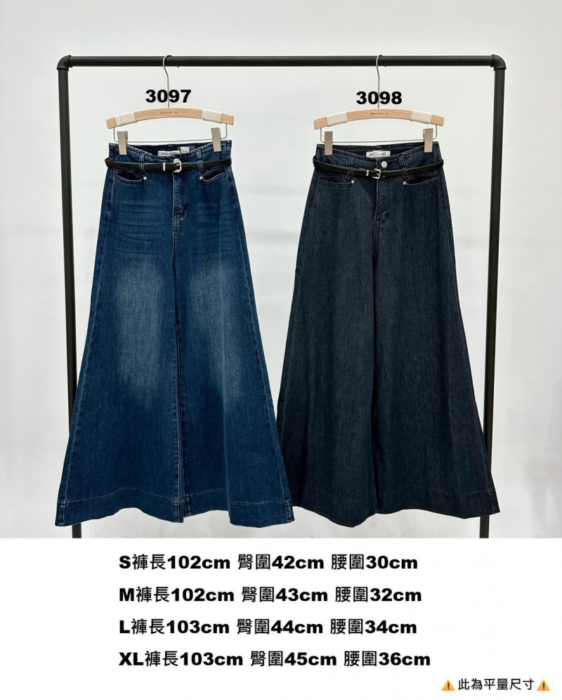 熱賣中🔥 即將售完女V1104-3098藍灰銀兩釦平口袋寬長褲附細黑皮帶