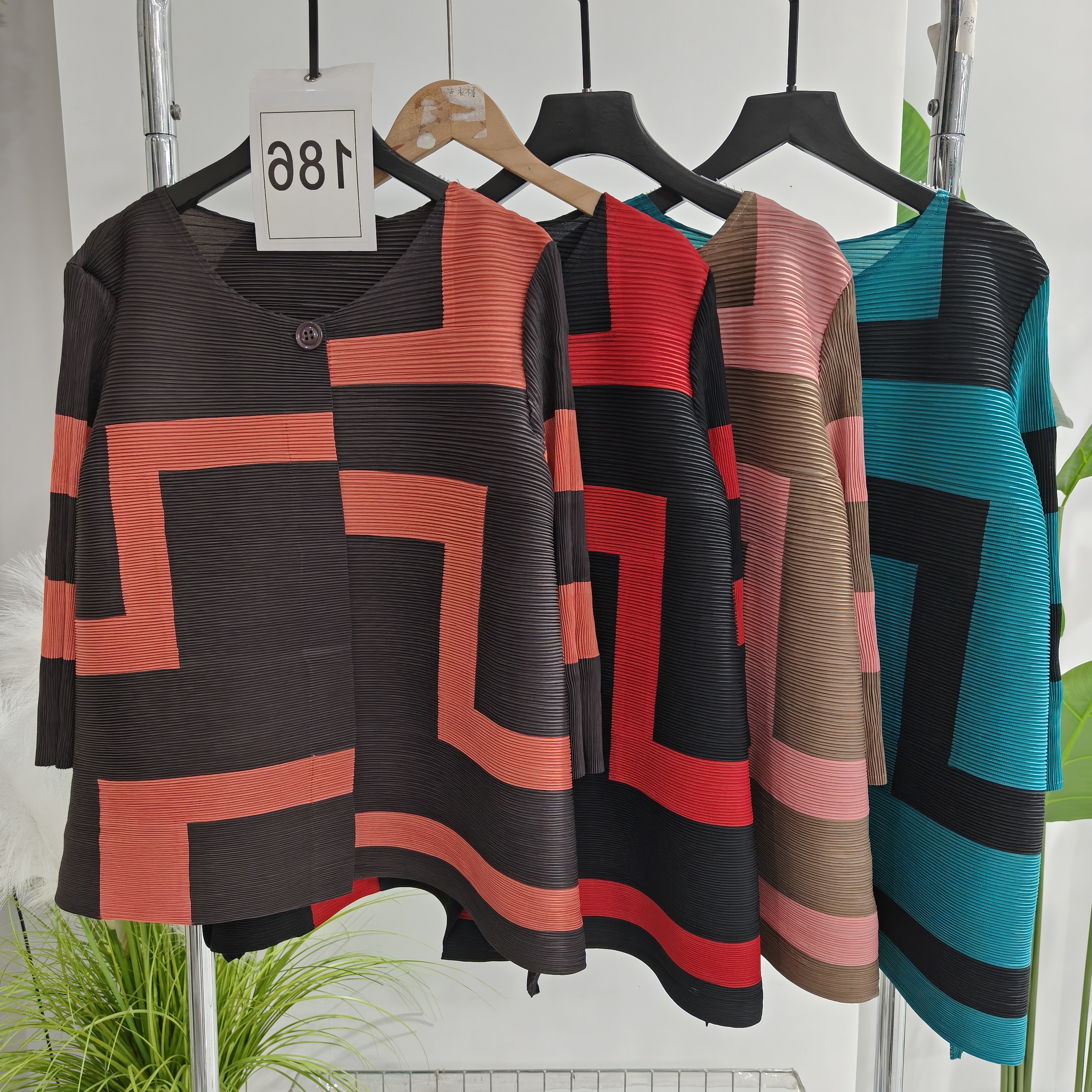 熱賣中🔥 即將售完3010 拼色鑽石褶上衣【衣長66】
