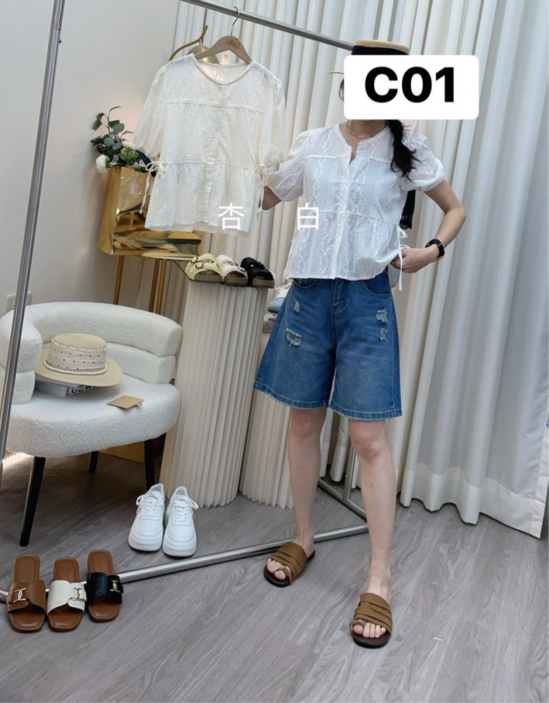 熱賣中🔥 即將售完H09款 (230)下接燒花高腰擴腿棉質短褲$149