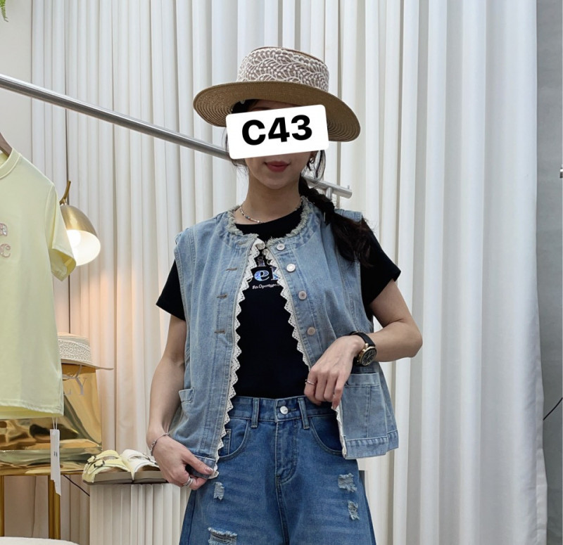 熱賣中🔥 即將售完預購C43款 (787)鬚邊蕾絲牛仔背心$388