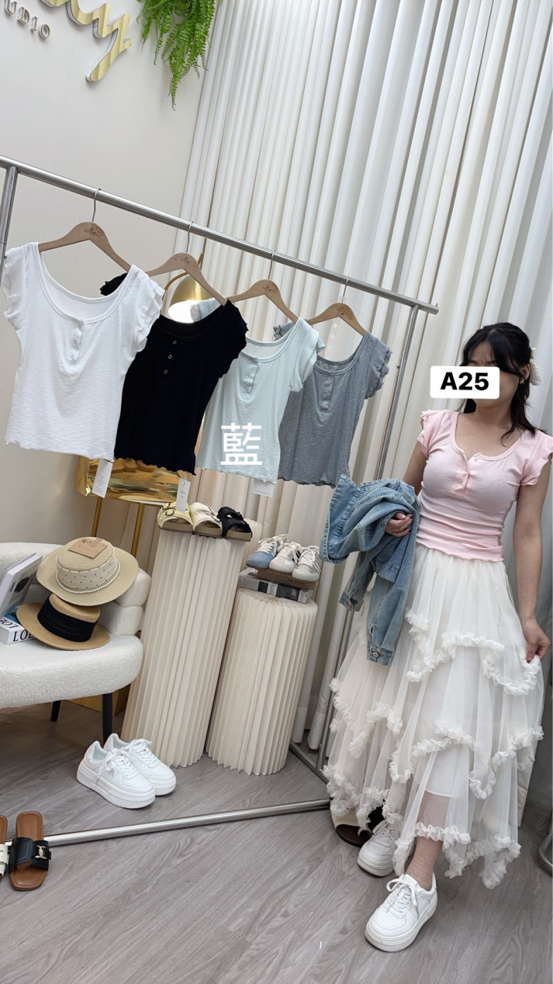 熱賣中🔥 即將售完A25款 (6723)木耳邊壓釦修身超彈力上衣$199