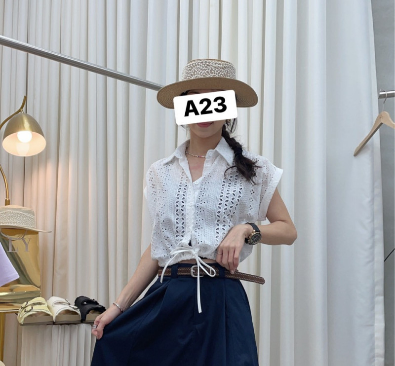 熱賣中🔥 即將售完預購A23款 (8826)棉麻燒花簍空下綁繩上衣$199