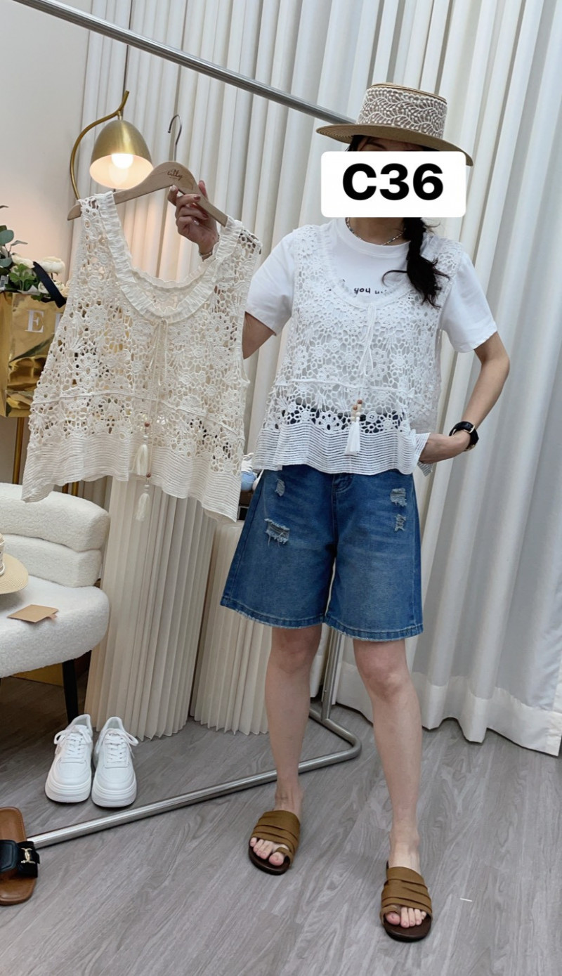 熱賣中🔥 即將售完預購C36款 (278)木耳邊前綁帶串珠燒花背心$199
