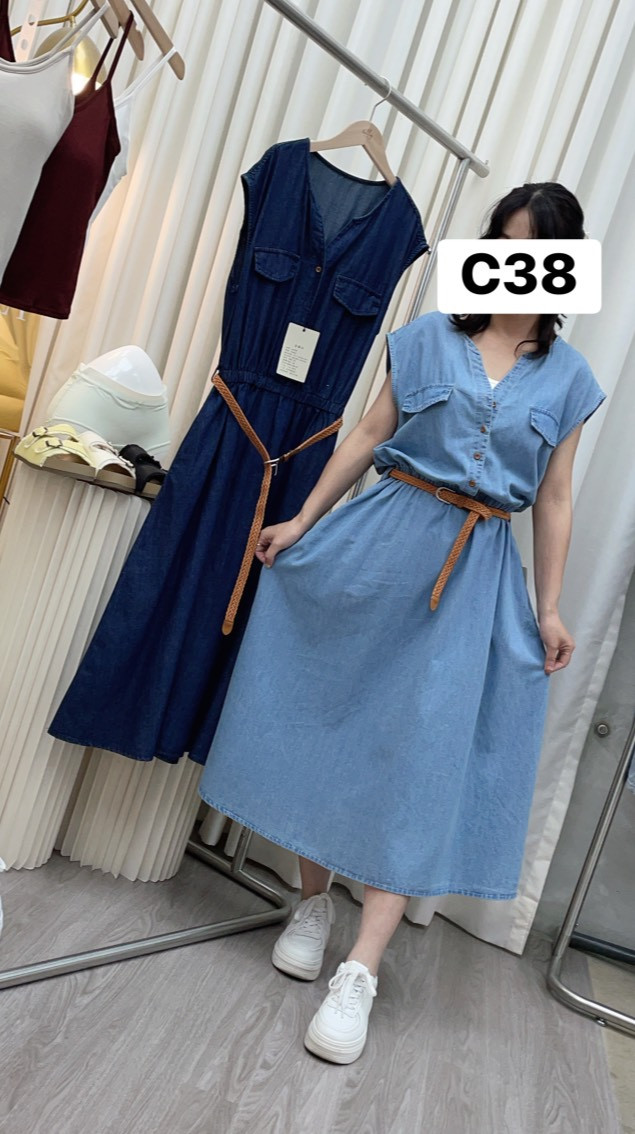 熱賣中🔥 即將售完C38款 (1610)圓領排釦牛仔長洋裝/附皮帶$499