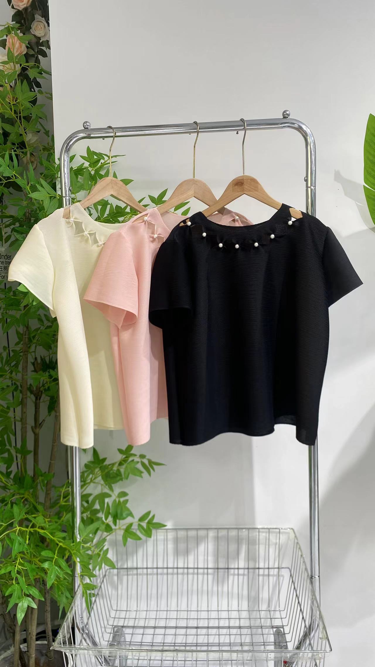 熱賣中🔥 即將售完3054密褶珍珠鏤空上衣【衣長53cm】