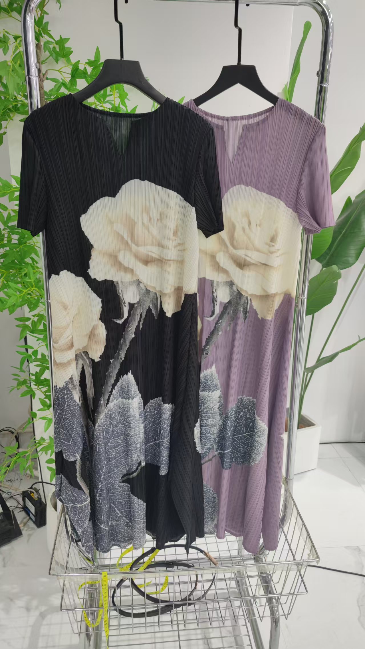 熱賣中🔥 即將售完3034v領玫瑰花印花連衣裙-長洋【裙長115cm】
