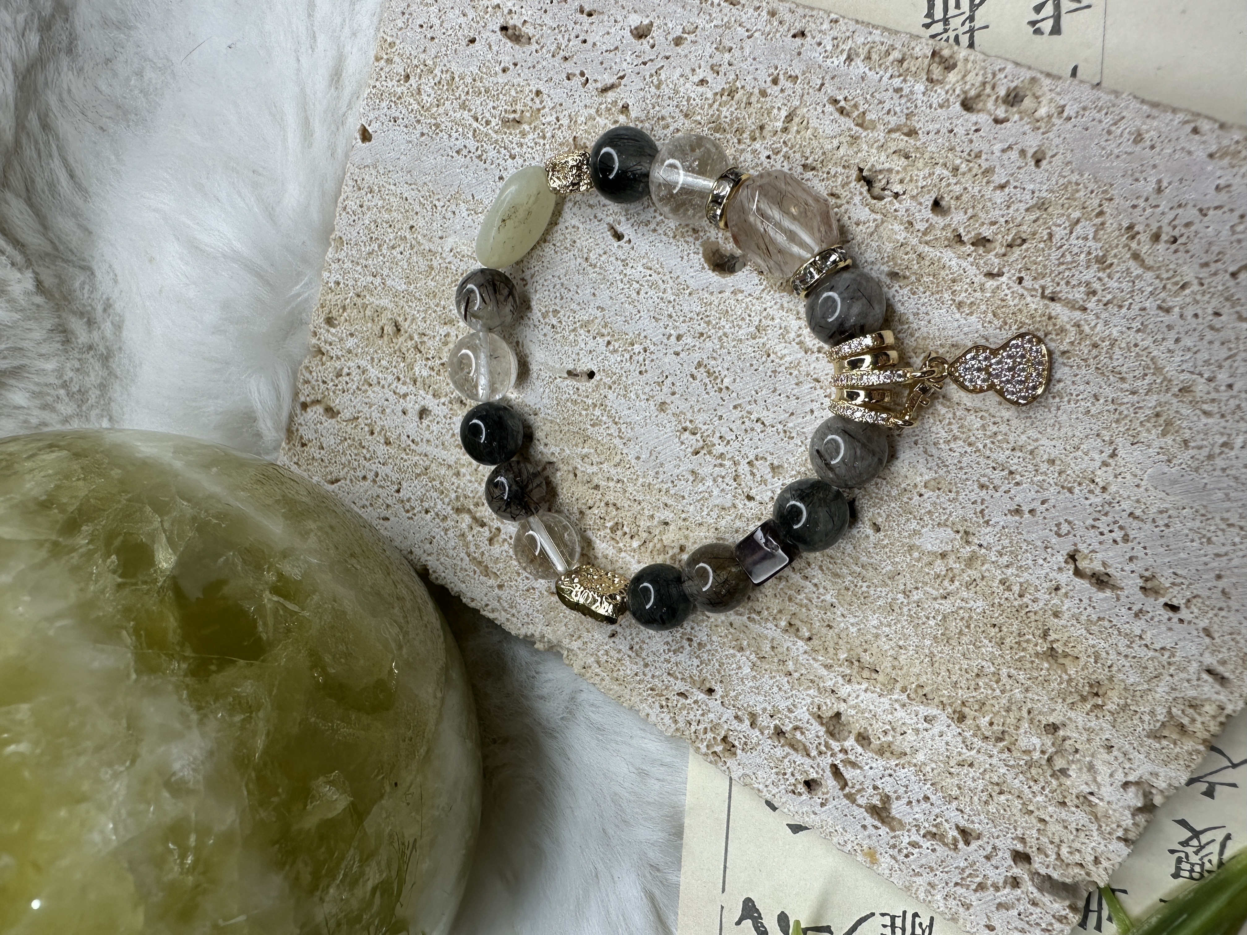 熱賣中🔥 即將售完4115(現貨1)預購-正能量設計款 茶晶綠幽水晶手串