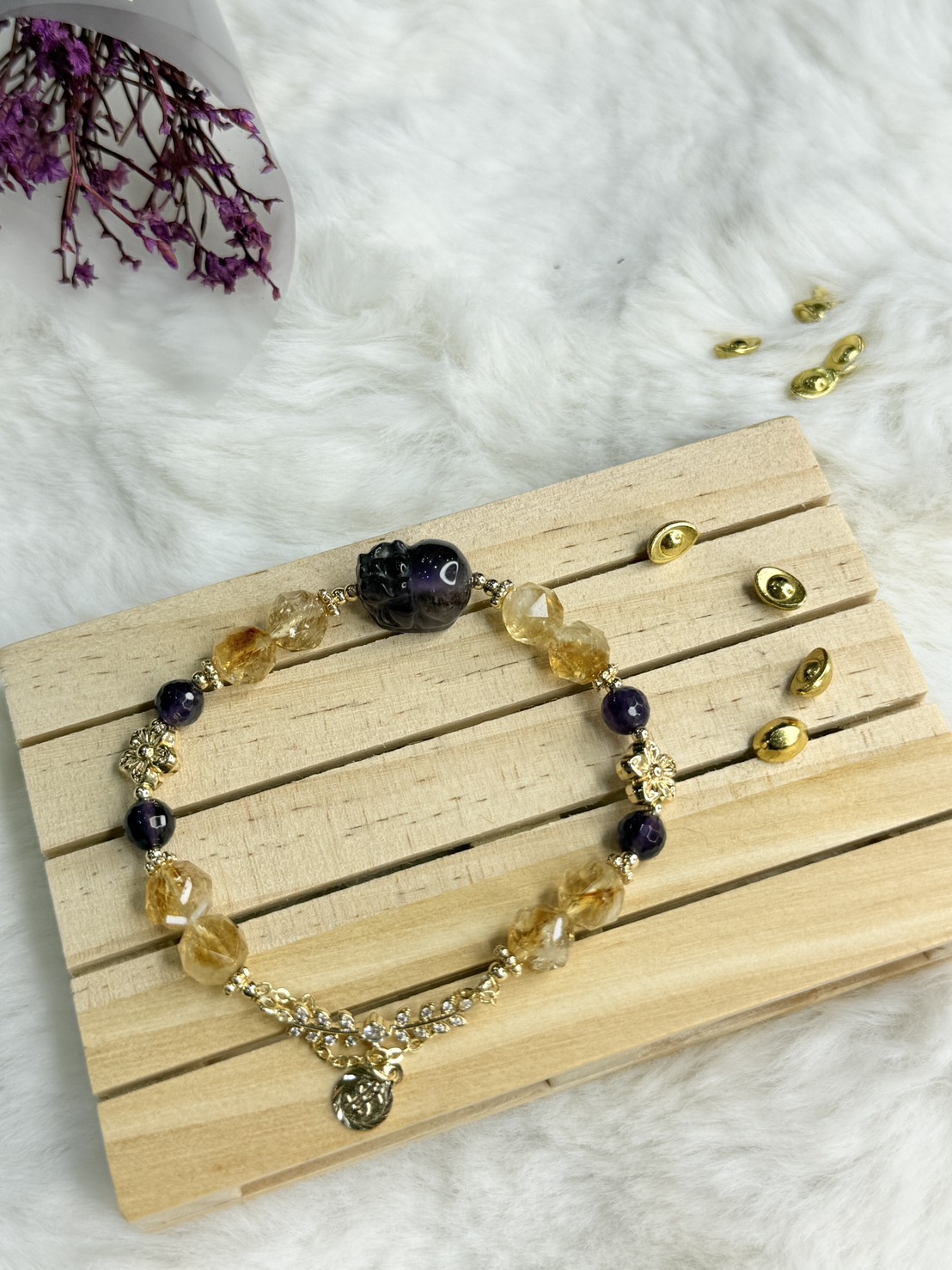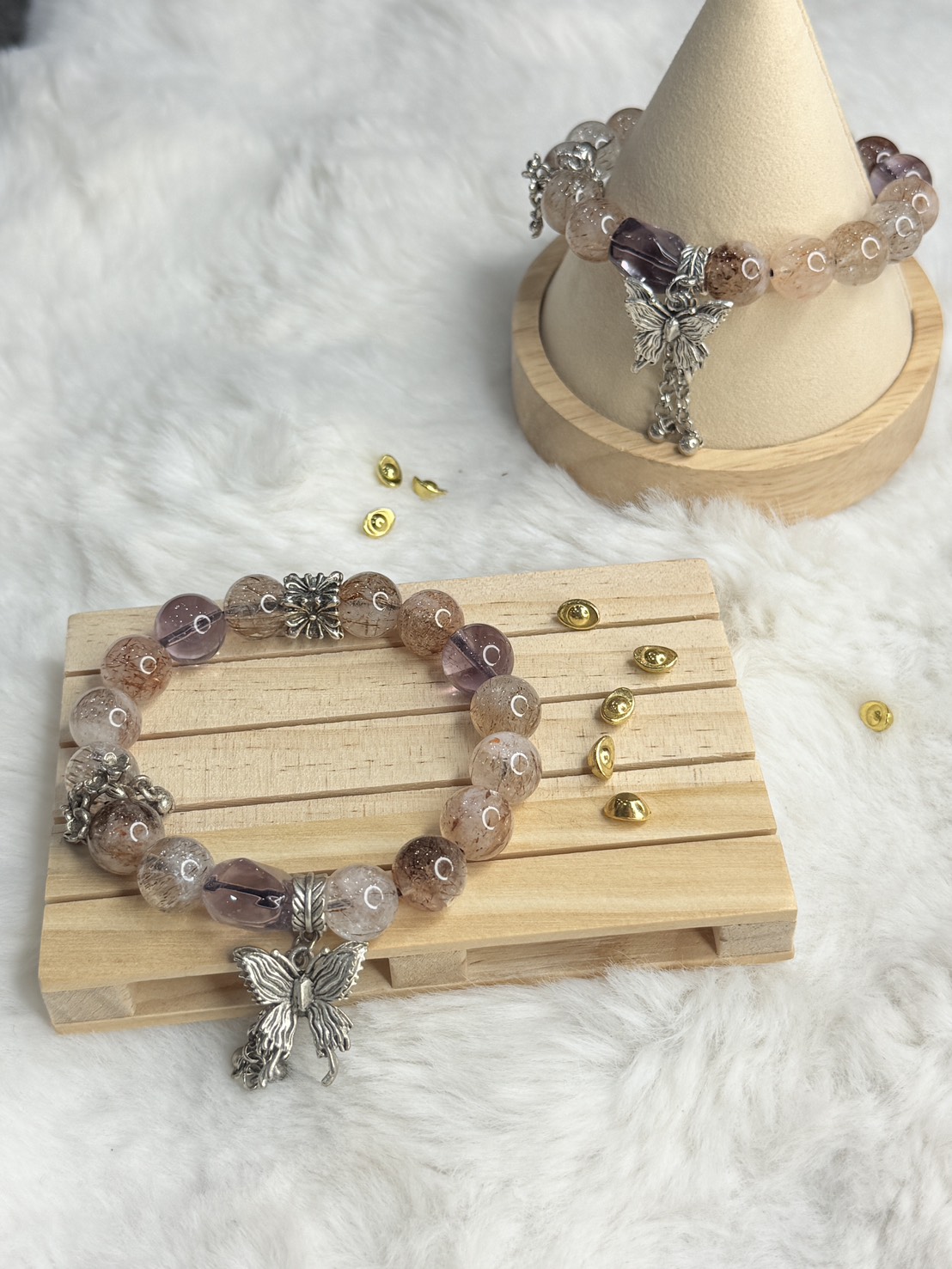 熱賣中🔥 即將售完41125(現貨1)預購-黑金超七紫晶銀色蝴蝶墜飾 手串