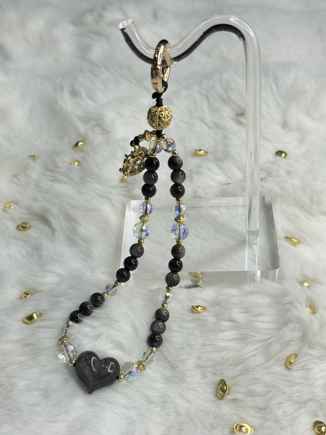 熱賣中🔥 即將售完4119預購-切面水晶珠 銀曜石心形鏤空 吊飾