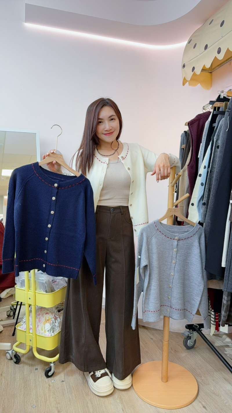 熱賣中🔥 即將售完女EM1125(10)-格紋扣車線邊針織外套(168)(6177深藍)