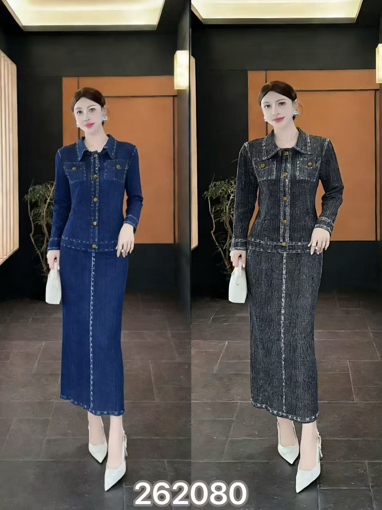 熱賣中🔥 即將售完19-牛仔套裝 單排扣上衣開叉半裙【衣長58裙長85】