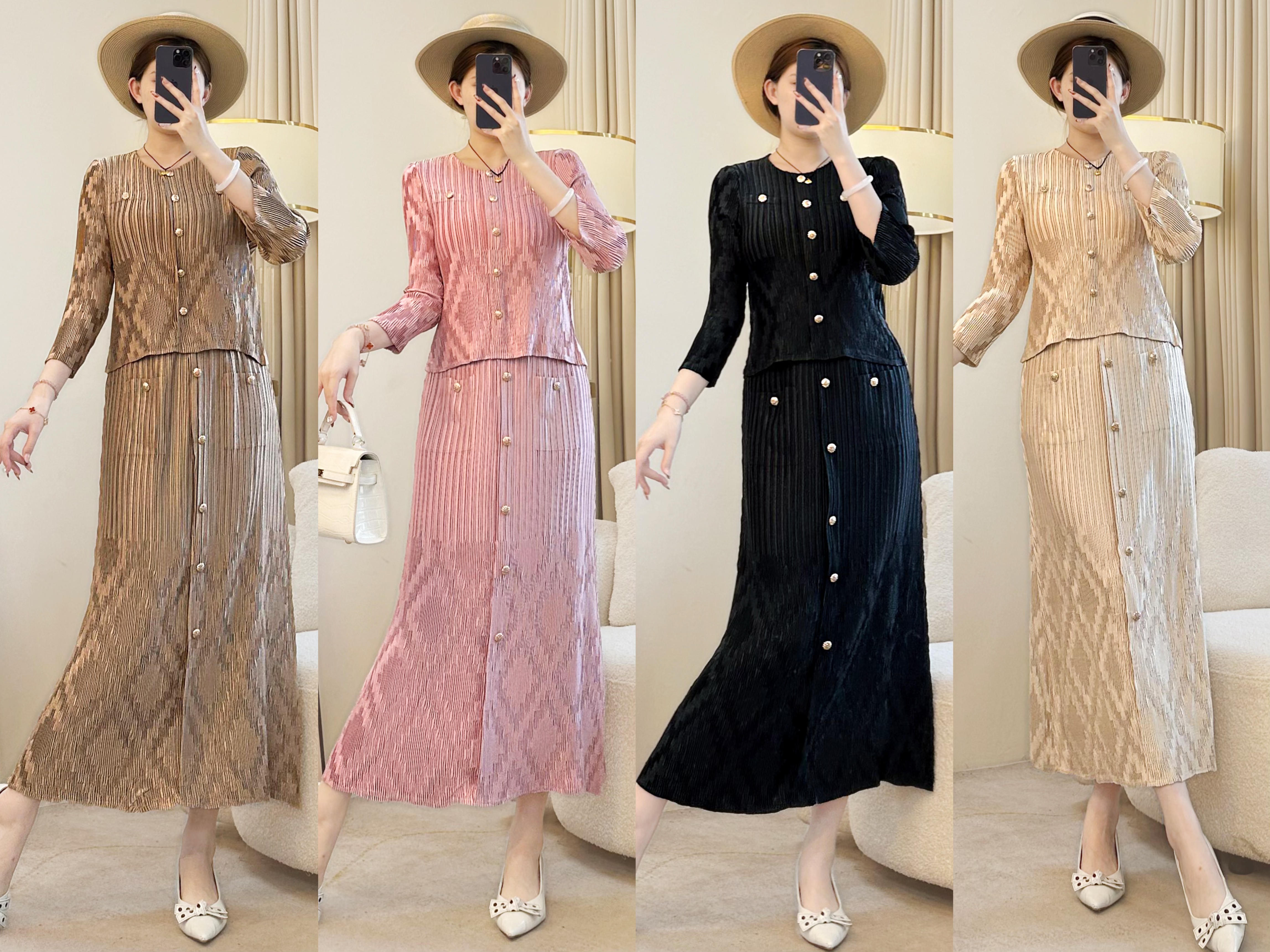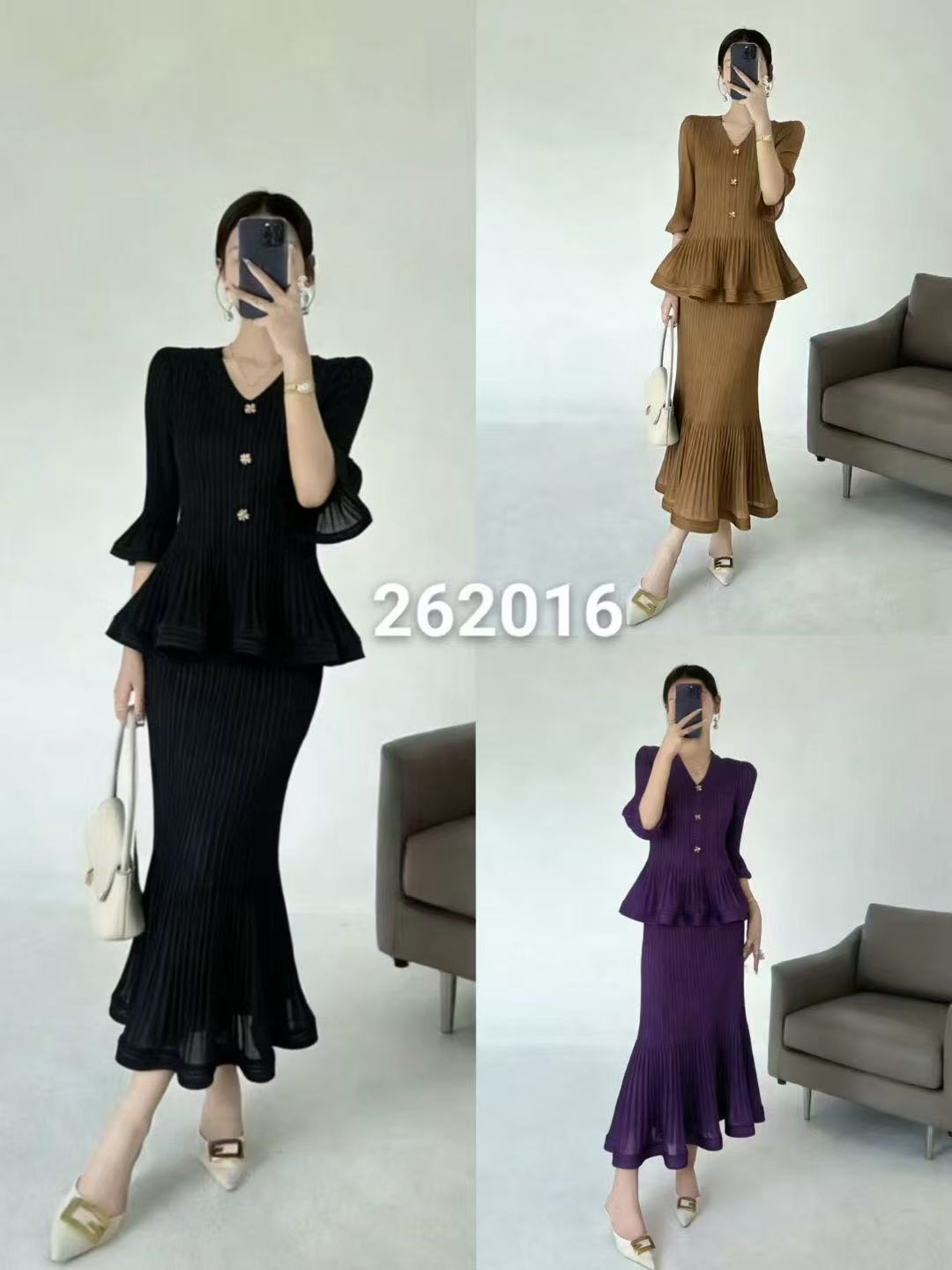 熱賣中🔥 即將售完1184荷葉邊套裝 釘扣上衣拼接半裙【衣長59cm裙長83cm】