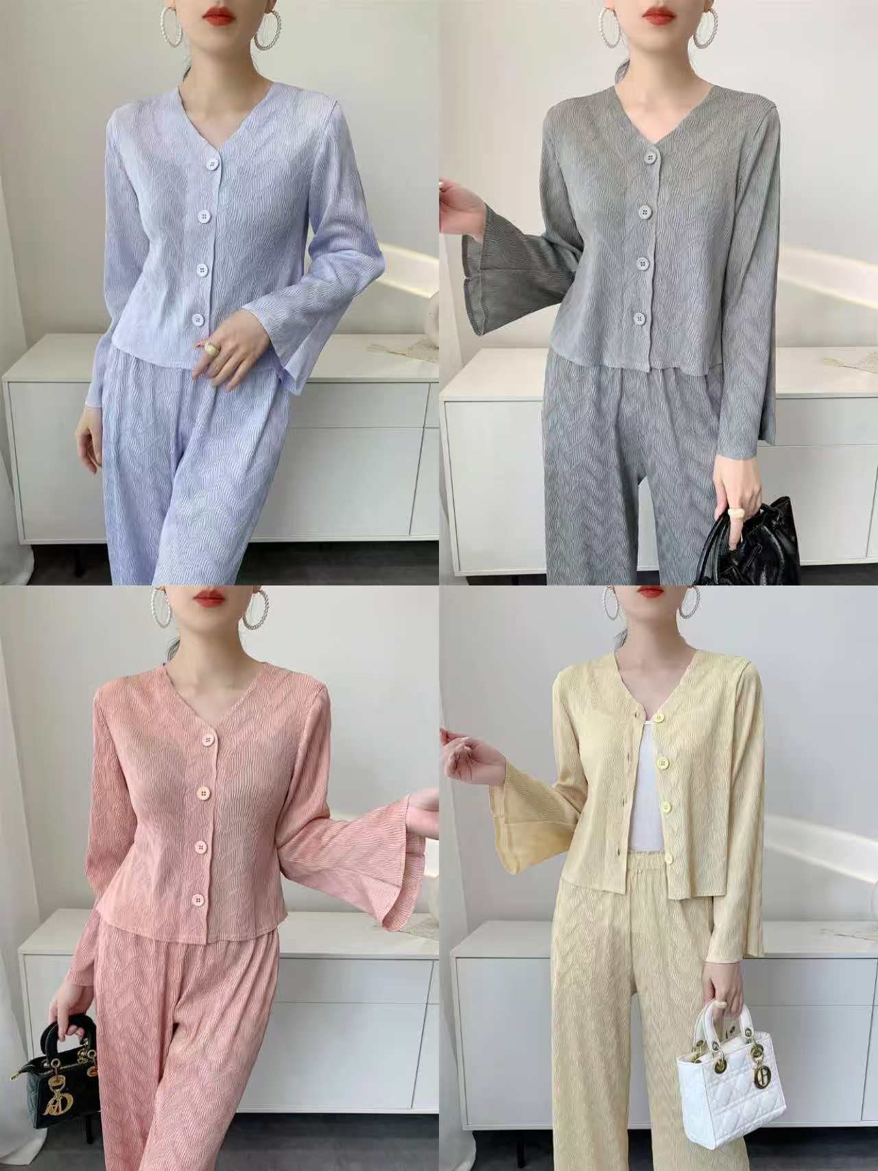 熱賣中🔥 即將售完277-小香風套裝 千鳥格印花上衣直筒褲子【衣長61cm褲長95cm】