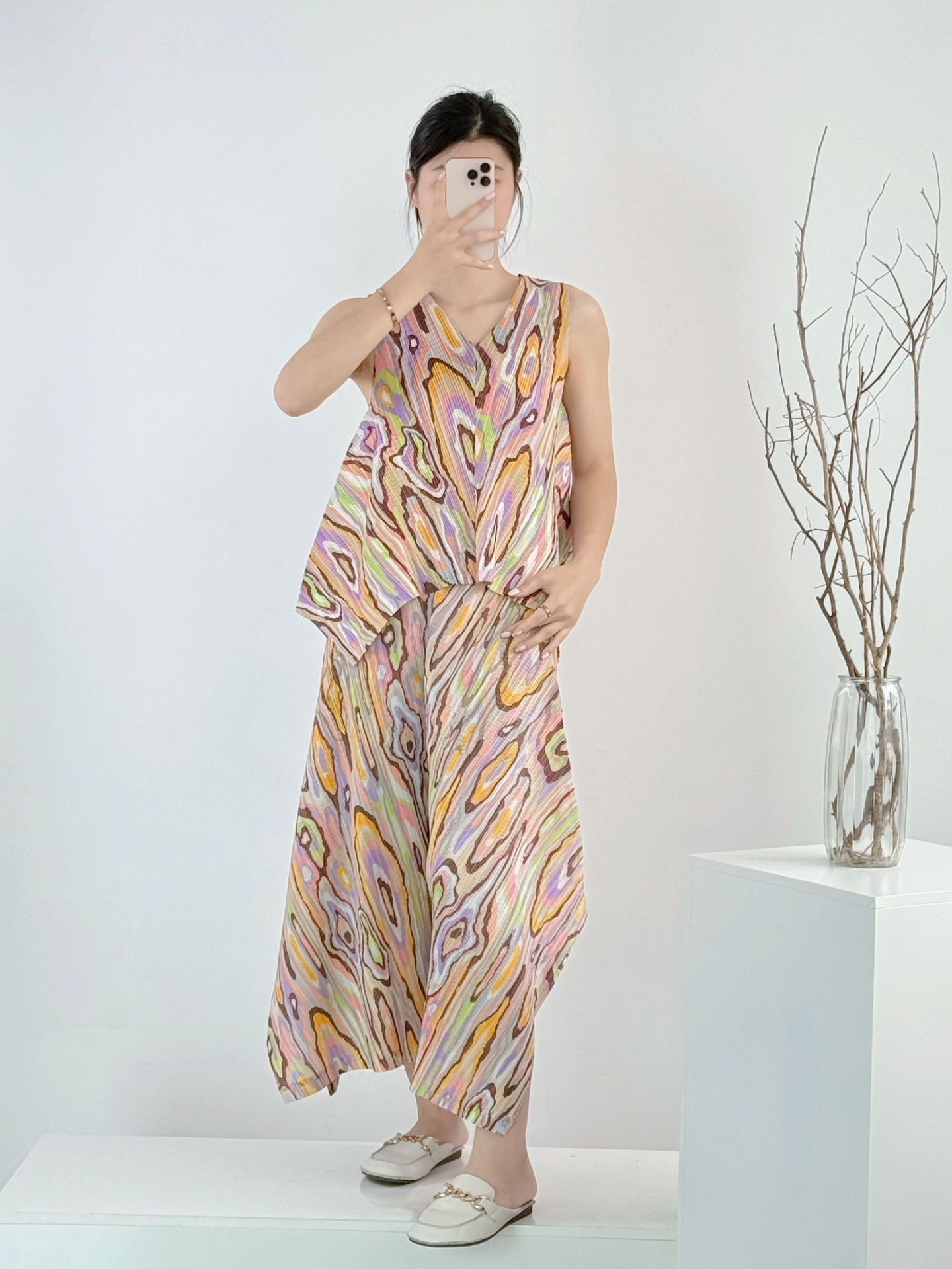 熱賣中🔥 即將售完2036印花套裝 背心上衣造型褲子【衣長66cm褲長91cm】