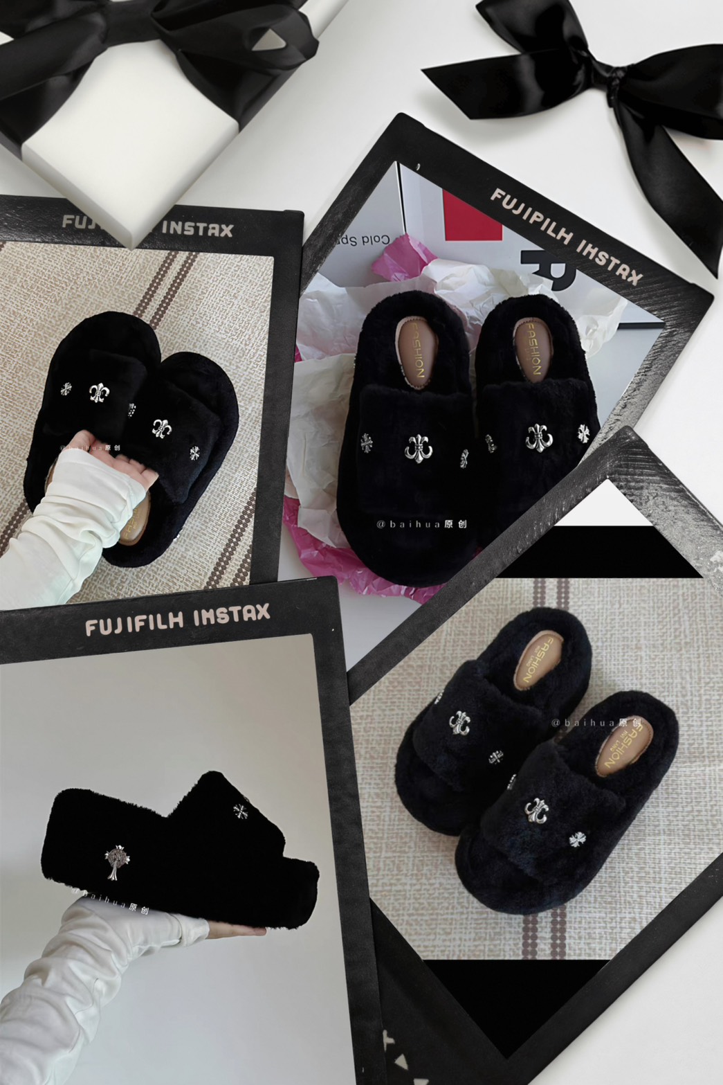 熱賣中🔥 即將售完1225現貨-可爱卡通鏈條厚底拖鞋女厚底毛絨保暖鞋
