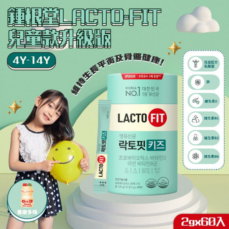 熱賣中🔥 即將售完H162鍾根堂LACTO-FIT藍綠色兒童款升級版乳酸菌益生菌(2gx60入)
