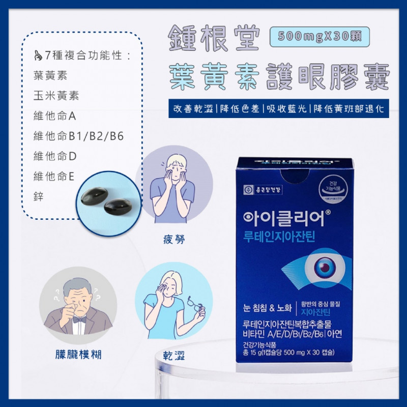 熱賣中🔥 即將售完H163鍾根堂 葉黃素護眼膠囊500mgX30顆(新包裝)