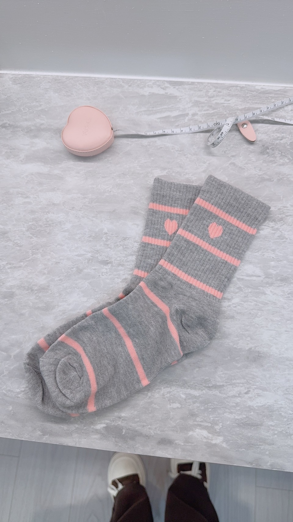 熱賣中🔥 即將售完品FA0311(10)-條紋愛心長襪(1雙)(266灰粉)