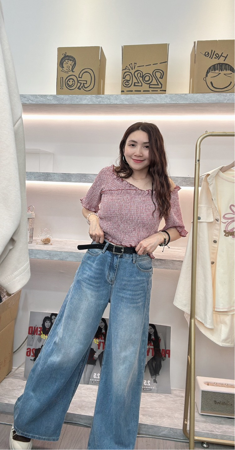 熱賣中🔥 即將售完女V0310(10)-刷色寬直筒皮帶牛仔長褲(1410041)(438藍)