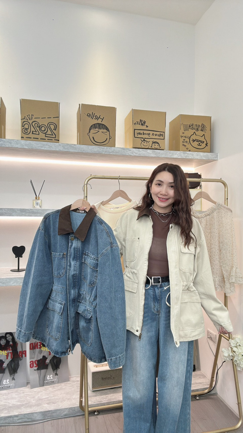 熱賣中🔥 即將售完女PD0309(10)-撞色領抽繩牛仔外套(9858)
