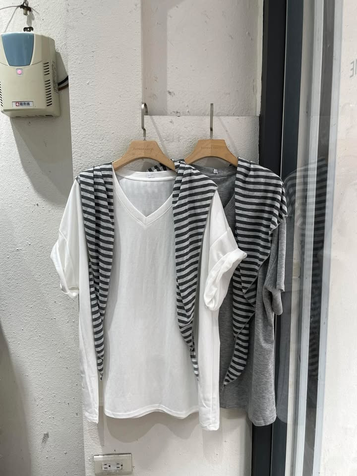 熱賣中🔥 即將售完06V領棉T+條文披肩SET(白)
