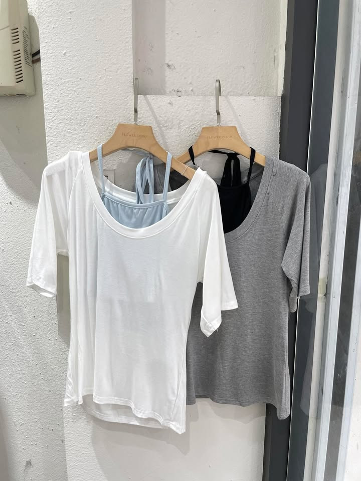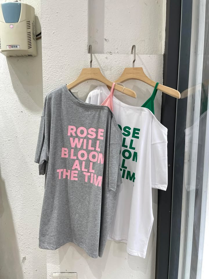 熱賣中🔥 即將售完56假兩件露肩字母上衣(灰)