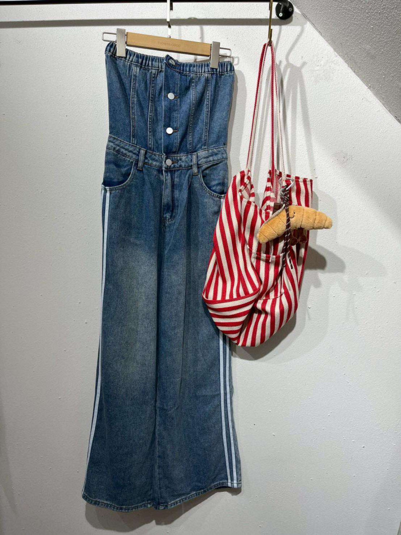 熱賣中🔥 即將售完176平口側邊條牛仔連身褲