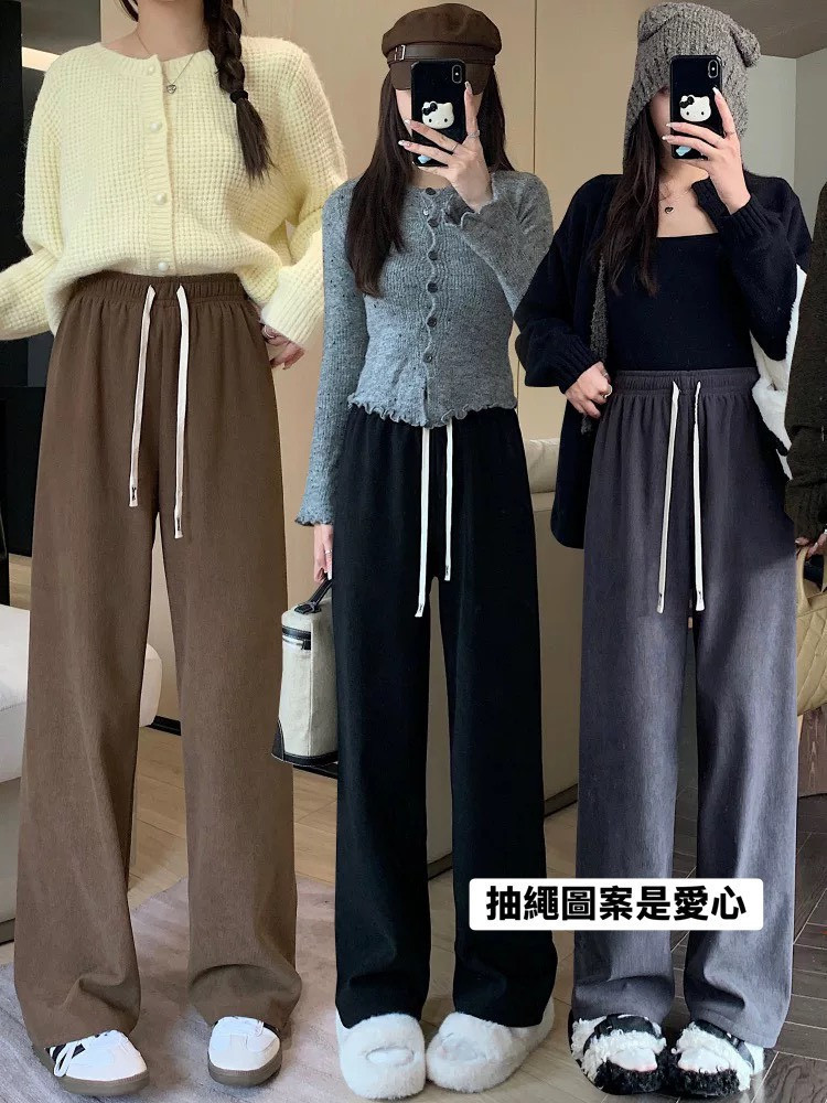 熱賣中🔥 即將售完A120鬆緊刷毛抽繩燈芯絨直筒褲