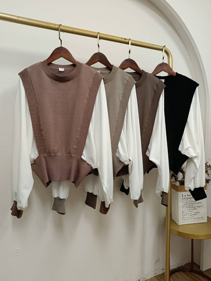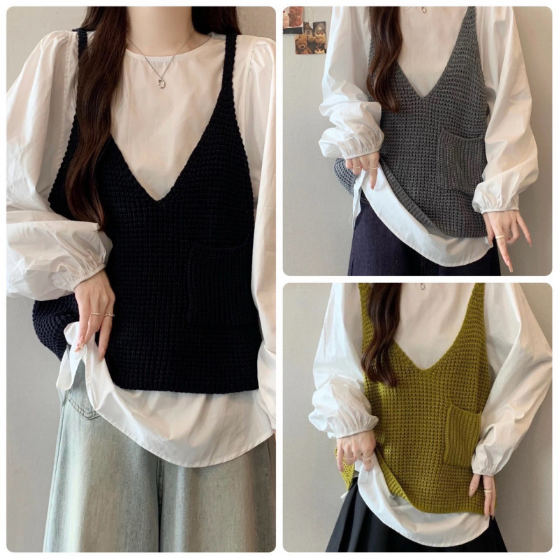 熱賣中🔥 即將售完A140兩件式針織背心+內襯衣(黃)