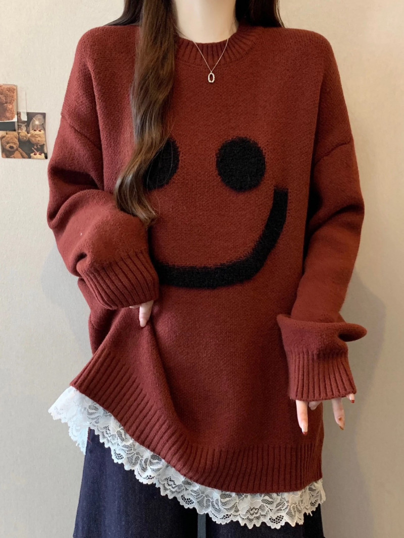 熱賣中🔥 即將售完A132微笑羊羔絨拼接蕾絲上衣