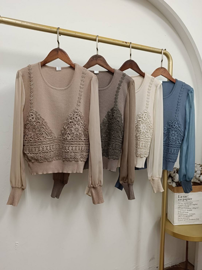 熱賣中🔥 即將售完B110設計拼接緹花上衣