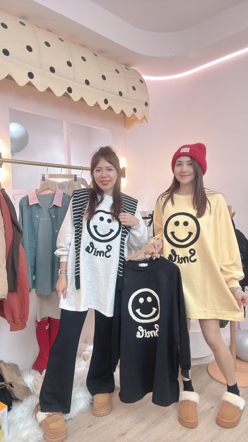 熱賣中🔥 即將售完(預購)女EM1125(10)-笑臉毛巾繡大學T(1120)