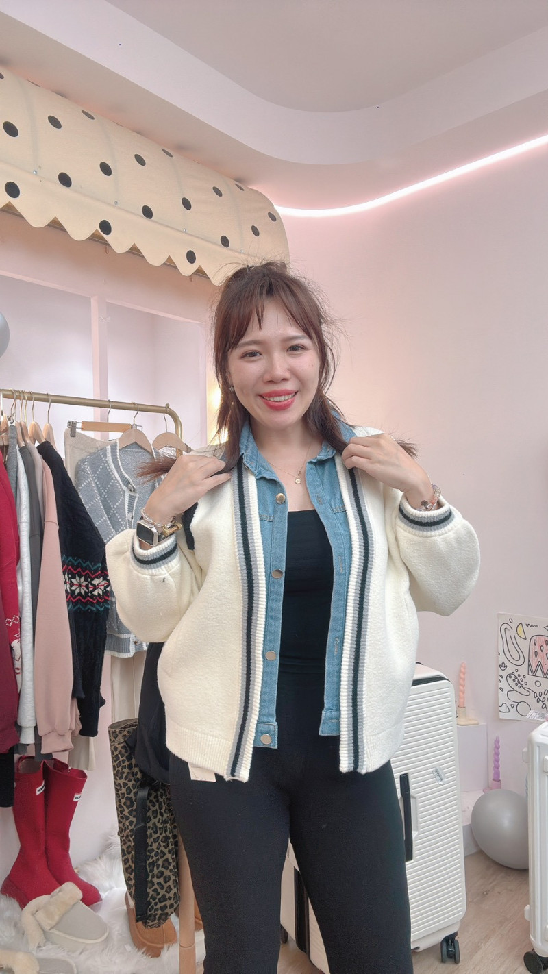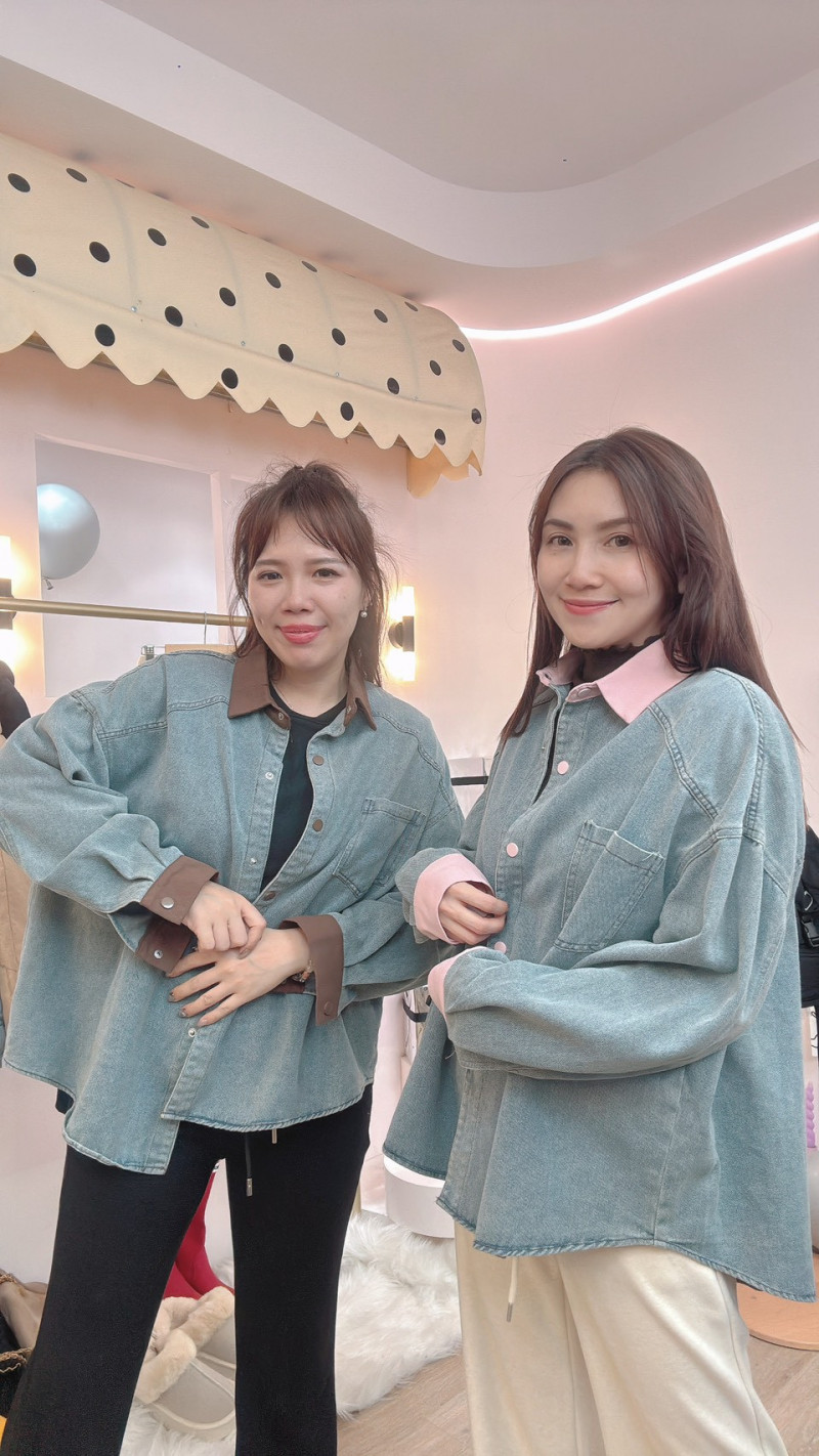 熱賣中🔥 即將售完女V1125(10)-領釦同色撞色牛仔外套(1400354)