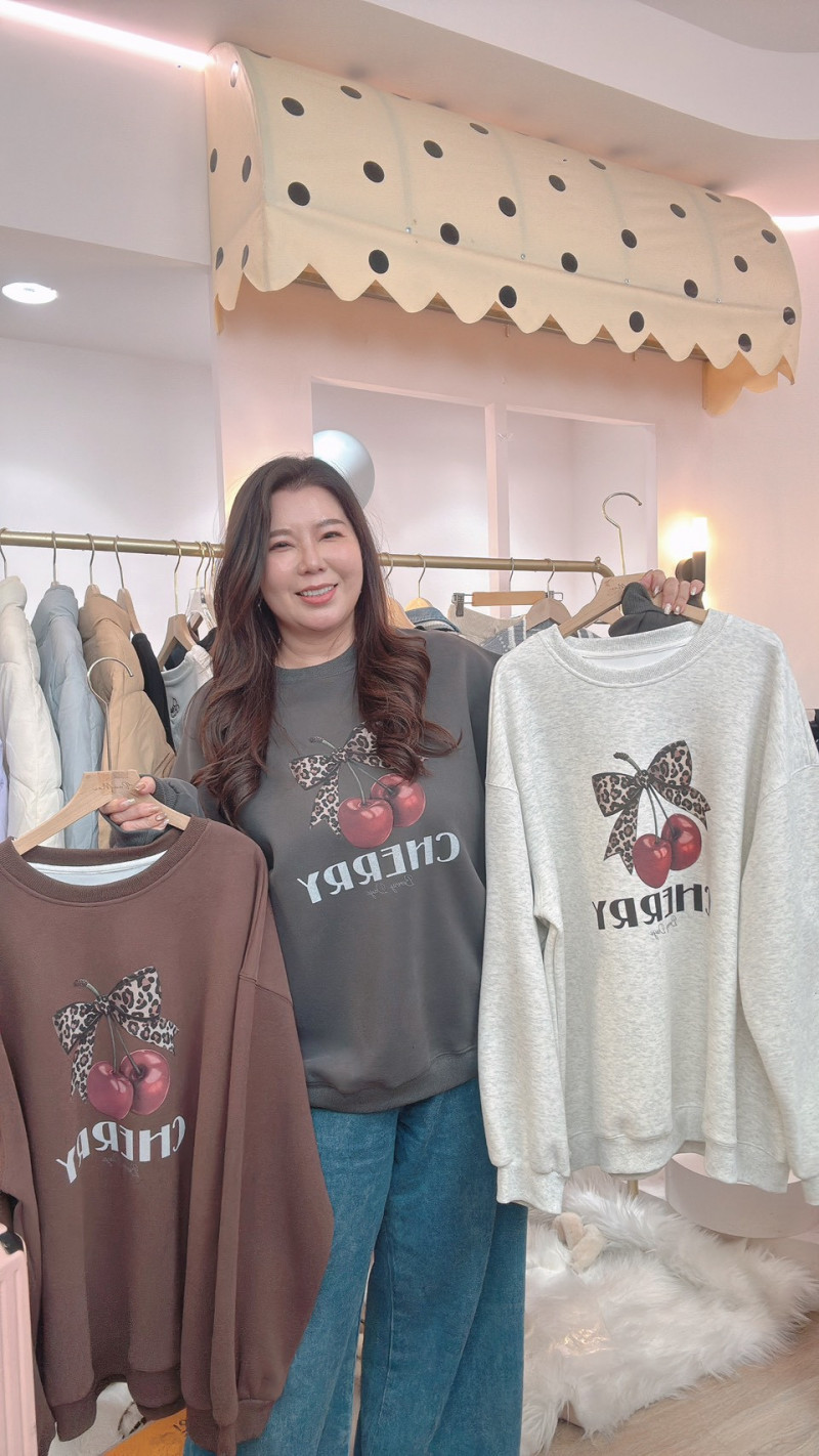 熱賣中🔥 即將售完(預購)女V1125(10)-大櫻桃豹紋蝴蝶結複合棉大學T(1400364)