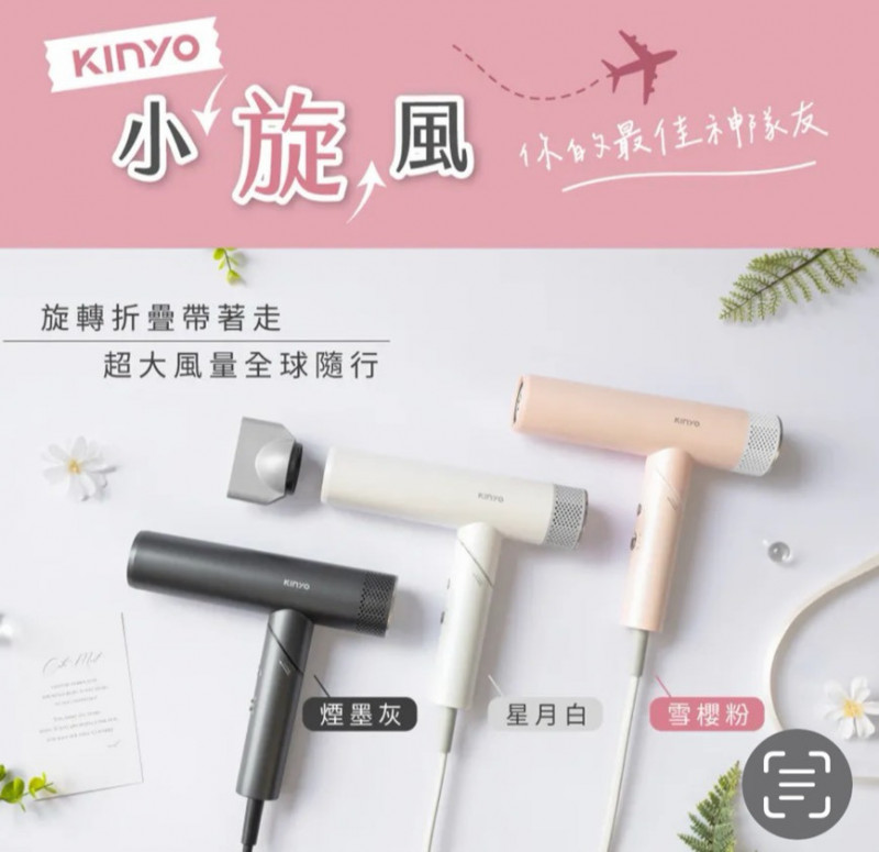 熱賣中🔥 即將售完A17標 預購 KINYO小旋風摺疊吹風機(3擋風溫/2段風力) 白/粉/灰 1台 保固1年+贈COCOREA品牌鏡子1個 連線價2480喜歡+1帶哪裡取(A嘉義取B台中取C郵寄)