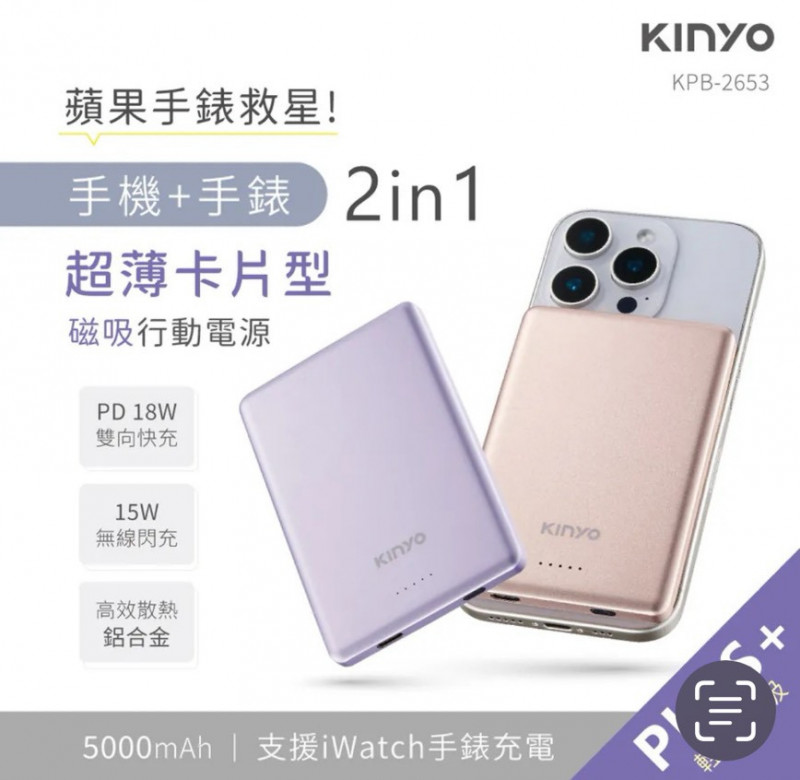 熱賣中🔥 即將售完A19標 預購 KINYO2 in 1超薄卡片型磁吸行動電源5000mAh 金/紫 1台 保固1年 連線價1290(前10位加單$990)喜歡+1帶哪裡取(A嘉義取B台中取C郵寄)