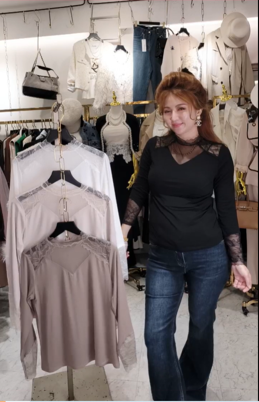 熱賣中🔥 即將售完225757拼袖蕾絲網立領衣$388