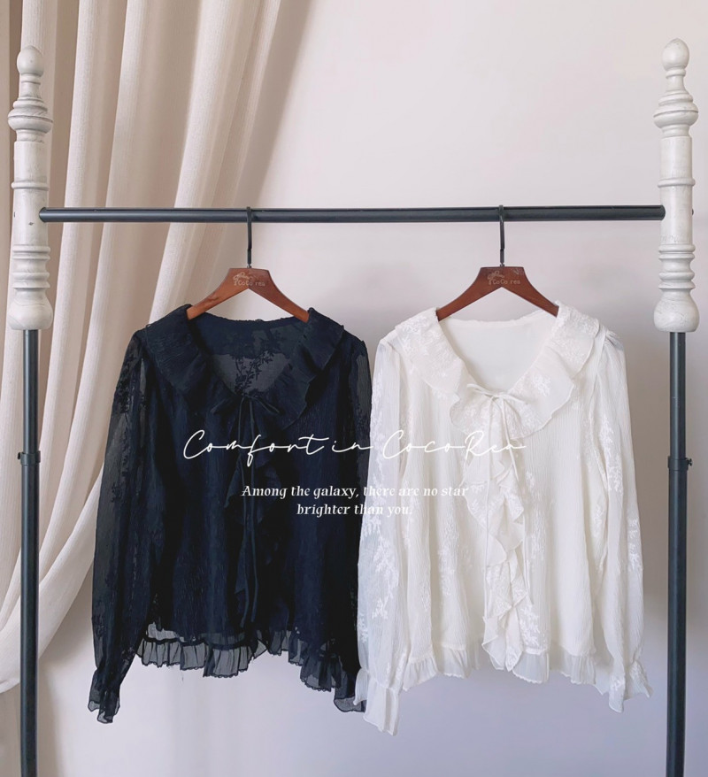熱賣中🔥 即將售完A37標 預購 荷葉波浪立體雕花雪紡上衣 黑/米 胸108 長60 連線價1380喜歡+1帶哪裡取(A嘉義取B台中取C郵寄)