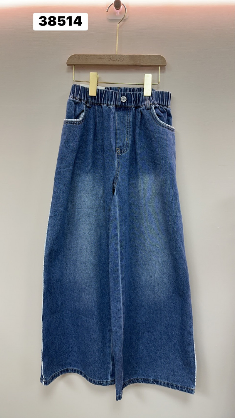 熱賣中🔥 即將售完TH0821(10)-1036藍鬆緊滾邊口袋牛仔寬褲(38514大)