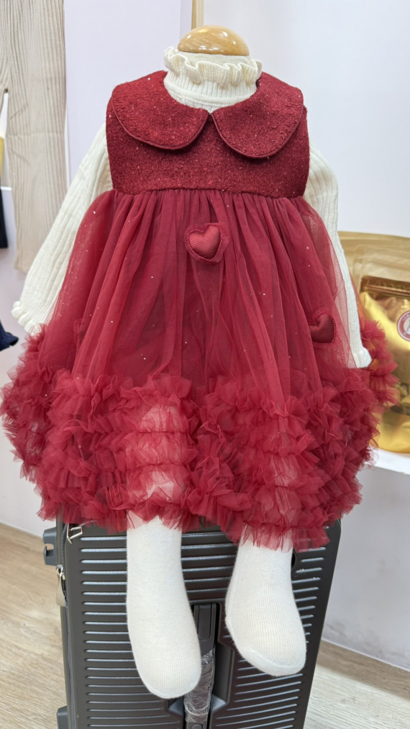 熱賣中🔥 即將售完G1110(10)-1469紅愛心紗洋兩件套