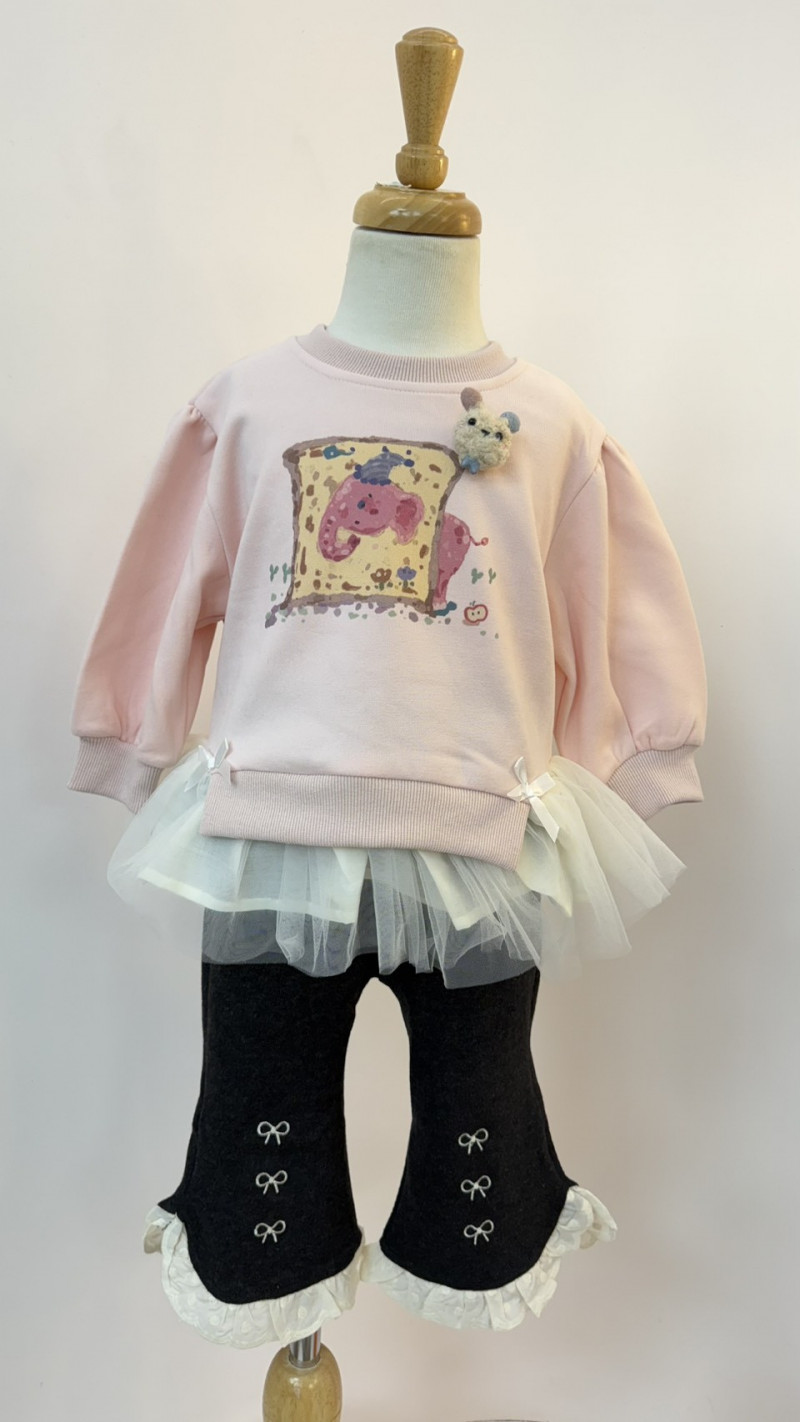 熱賣中🔥 即將售完G1013(10)-1411粉慶生小象蕾絲下擺上衣