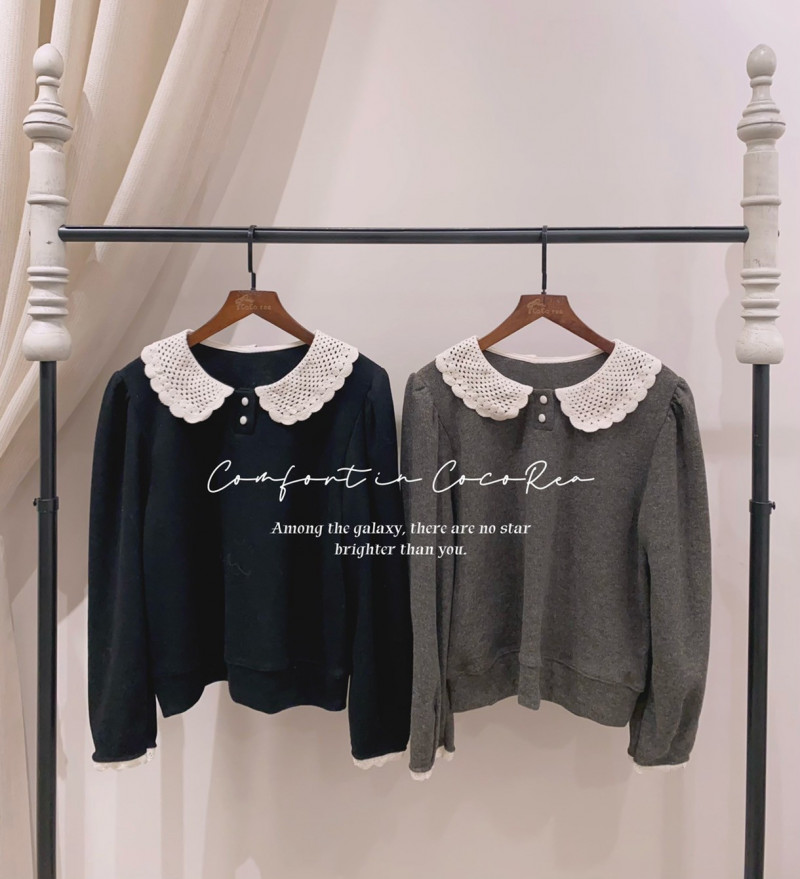 熱賣中🔥 即將售完55標 預購 勾針蕾絲領針織混棉上衣 黑/咖 胸108 長55 連線價1180喜歡+1帶哪裡取(A嘉義取B台中取C郵寄)