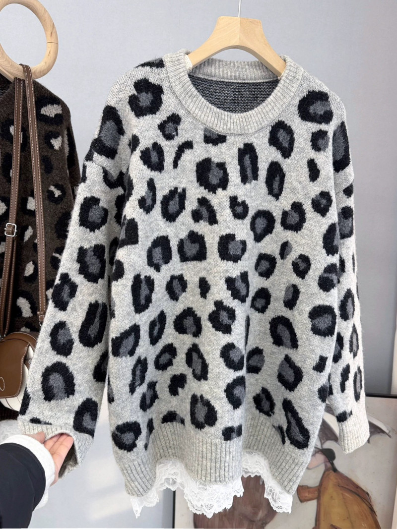 熱賣中🔥 即將售完A511拼接蕾絲豹紋毛衣
